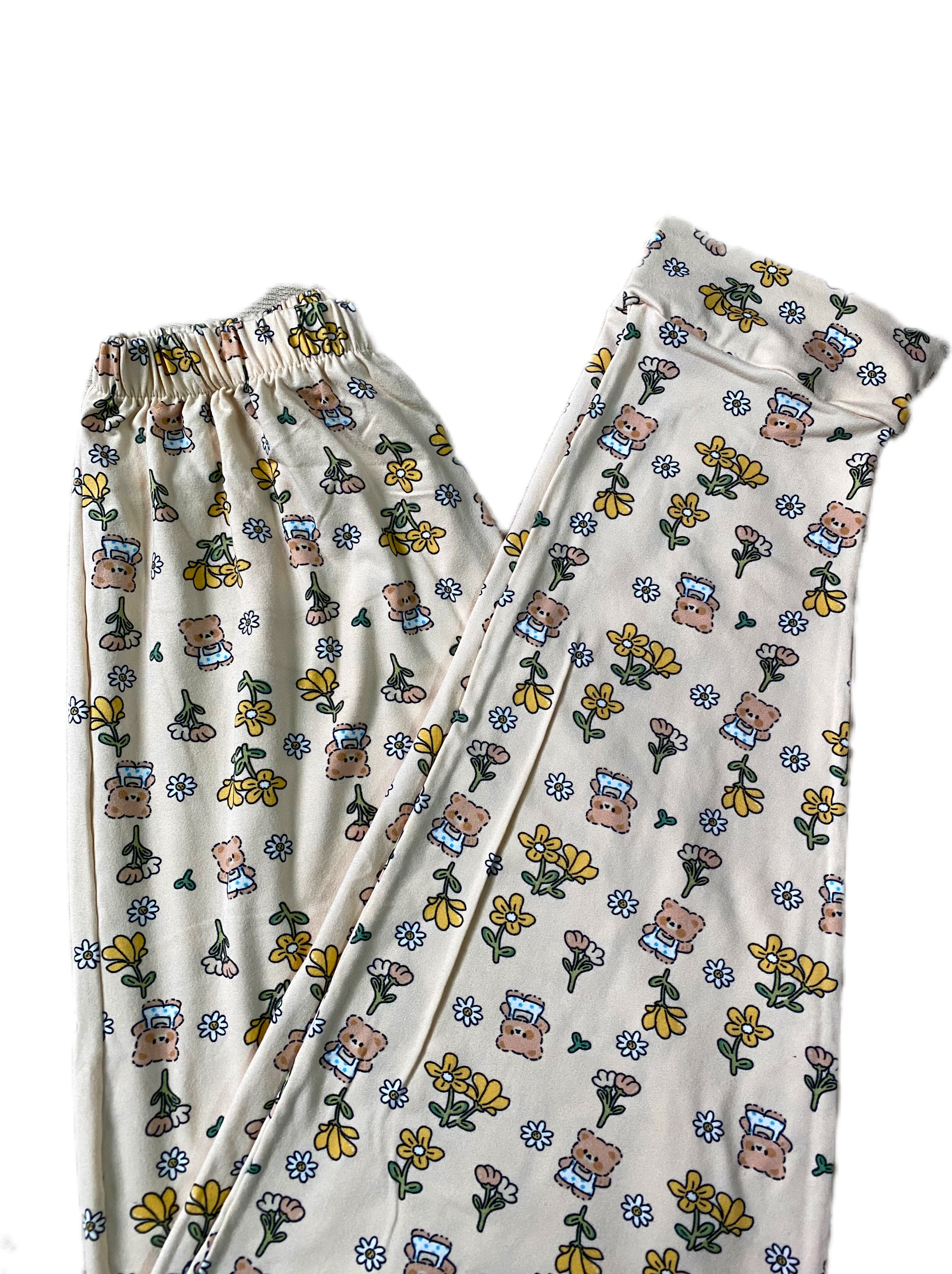 ست تیشرت و شلوار راحتی زنانه - طرح خرس و گل
